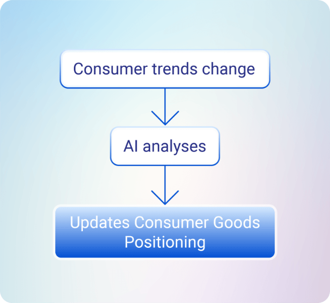 BrandsBuilder.ai empowers consumer goods companies to evolve continuously. As consumer preferences shift, your brand positioning updates dynamically through AI analysis, keeping your identity sharp and your communication consistent.