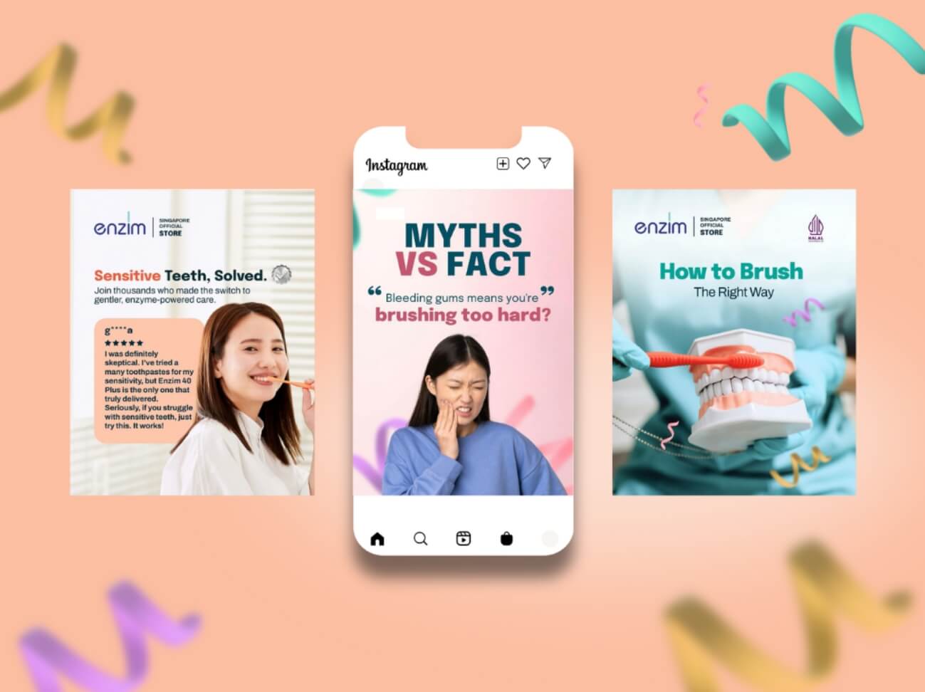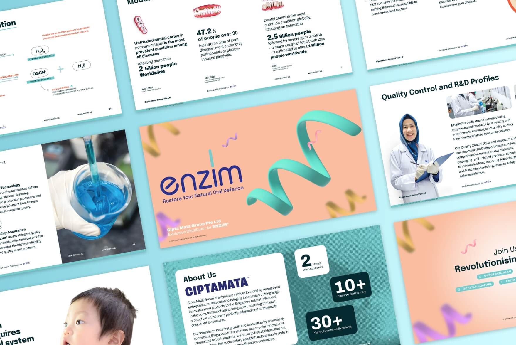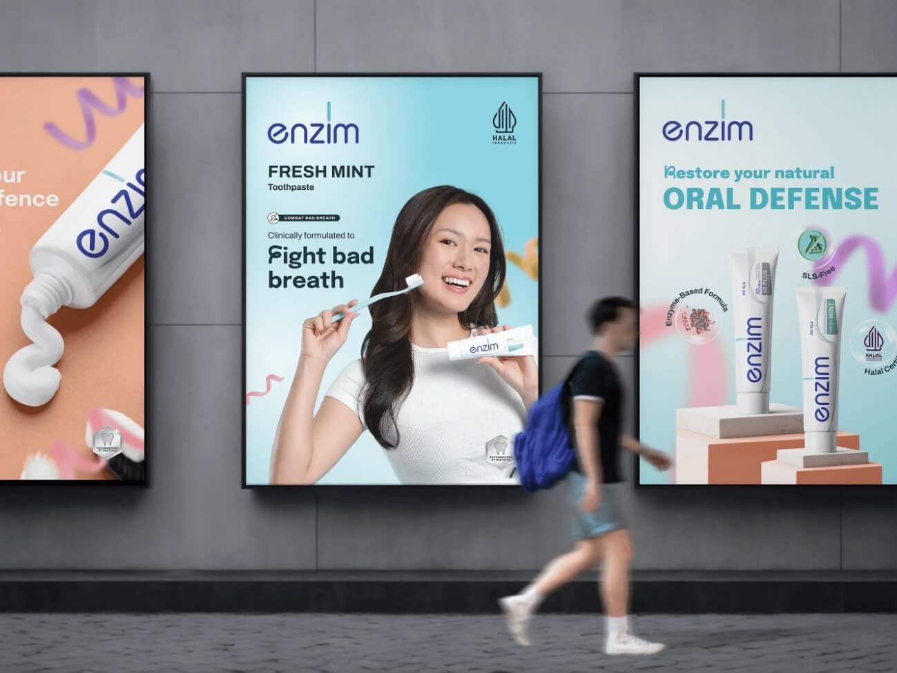 Entering Singapore’s oral care market meant competing against entrenched global brands with massive marketing budgets. Enzim needed to overcome three barriers simultaneously: shifting consumer perception away from “foaming = effectiveness” (SLS creates foam but damages oral microbiome), establishing credibility in a new market with zero brand recognition, and building a complete brand presence across digital and physical channels, from packaging and website to social media, marketing campaigns, and exhibition materials, within a tight launch timeline and budget.