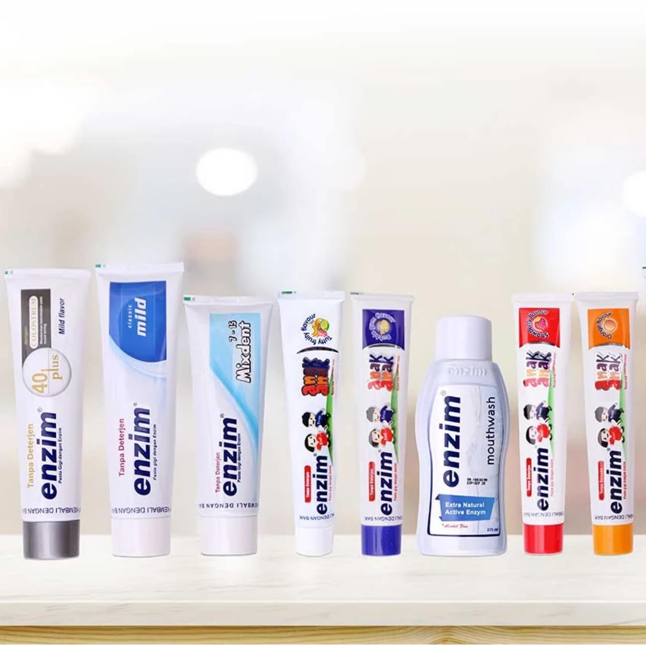 Enzim’s Indonesian packaging follows a more conventional toothpaste format.